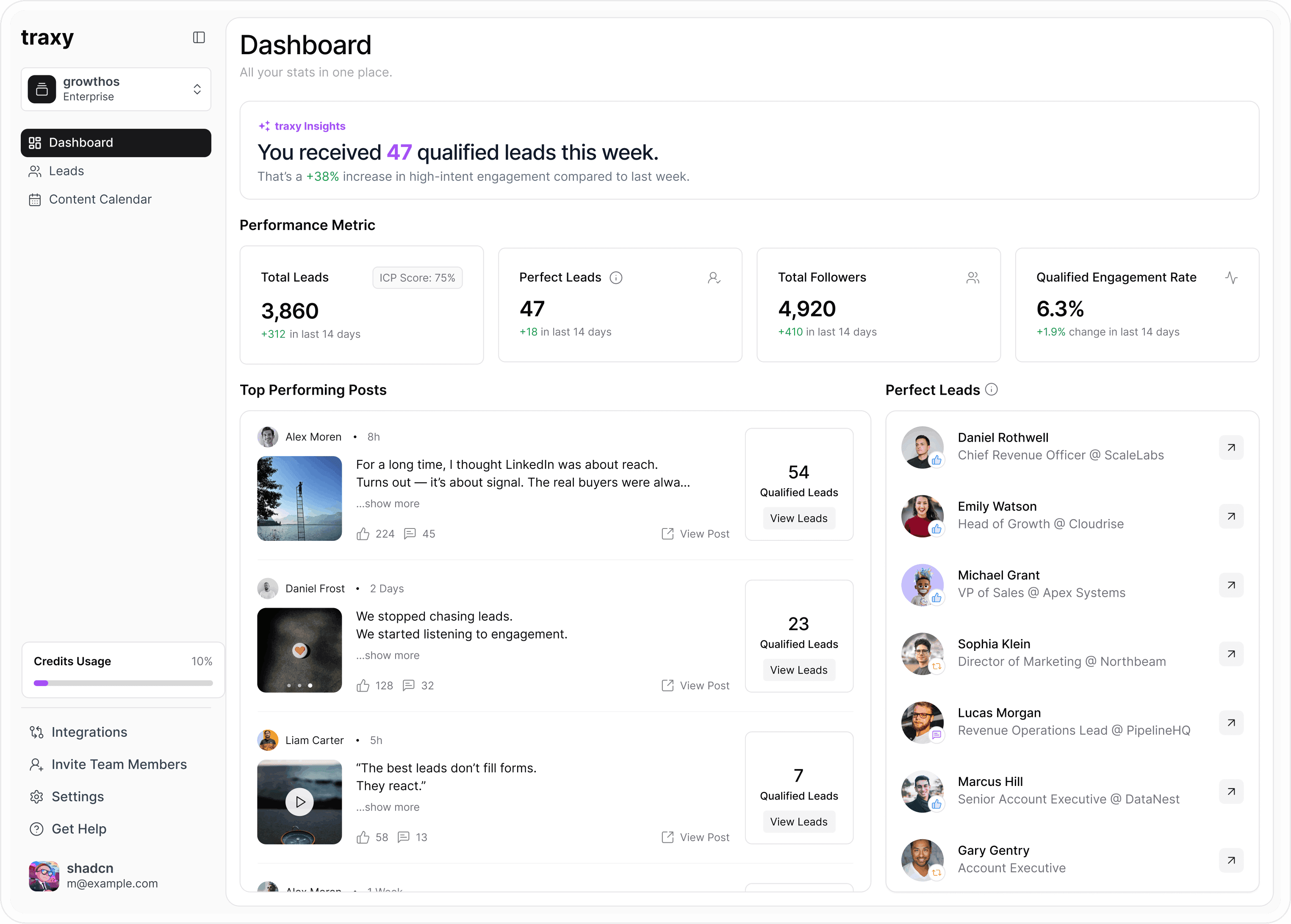 "LinkedIn is our top revenue driver, and traxy has been instrumental in maximizing its potential. With clear insights into engagement metrics, we can pinpoint and prioritize the right prospects, making our sales efforts more targeted and effective."